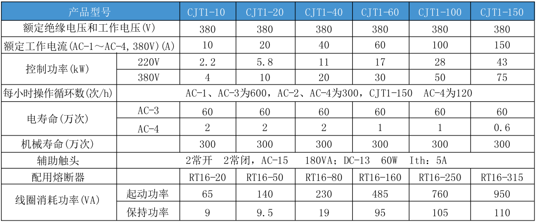 CJT1系列交流接觸器(以下簡稱接觸器),主要用于交流50Hz(或60Hz),在AC-3使用類別中額定工作電壓380V時,額定工作電流至150A的電力線路中,供遠距離接通和分斷之用,并可與適當的熱繼電器組成電磁起動器,以保護可能發(fā)生操作過負荷的電路。同時也是CJ10系列接觸器的替代產品。